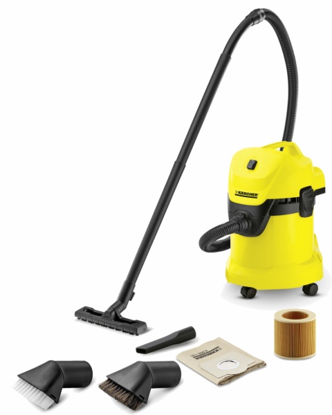 • El aspirador multiuso wd 3, súper potente y con una alta eficiencia energética, está equipado con un recipiente de plástico de 17 l, un filtro de cartucho y nuevos accesorios.