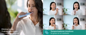 • La tecnologìa sónica combinada con nuestra acción de cepillado elimina suavemente hasta 3 veces más placa* que un cepillo dental manual.