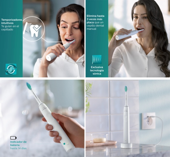 • Se ha demostrado clìnicamente que el cepillo dental eléctrico sonicare con tecnologìa sónica avanzada elimina hasta tres veces mejor la placa que un cepillo dental manual, eliminando la placa de los dientes y de la lìnea de las encìas, a la vez que las protege.
