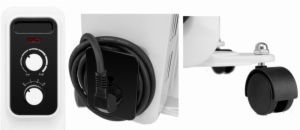 • Además, y gracias a las cuatro ruedas pivotantes multidireccionales y el asa incorporada, puedes mover tu radiador por casa sin apenas esfuerzo. posee un indicador de luz led que avisa de que el aparato se encuentra en funcionamiento para mayor seguridad de toda la familia. incluye un cómodo recogecables para recoger el aparato de forma sencilla.