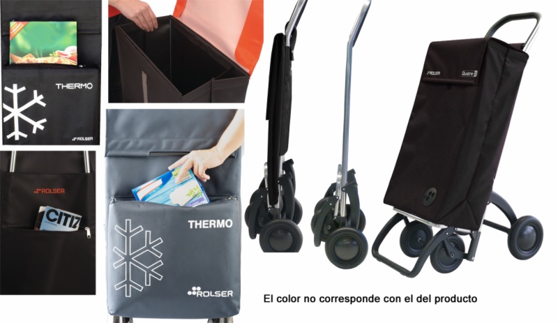 • Perfecto para llevar la carga de la lavanderìa, playa, shopping, pesca, gimnasio, etc... chasis con apoyo delantero y base inferior abatible para guardar en espacios pequeños. la bolsa thermo fresh tiene gran capacidad, armazón interior plegable, bolsillo térmico y bolsillo trasero con cremallera.