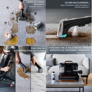 • Rowenta clean it es la solución óptima para los derrames y accidentes diarios, todo un limpiador de manchas que se enfrenta a lo que ensucian mascotas y niños con total facilidad. este limpiador de moquetas portátil, rápido y eficaz, ofrece una acción de limpieza múltiple fiable, con cabezales de limpieza intercambiables para alfombras, sofás, interiores de coches, tapicerìas, colchones y mucho más.