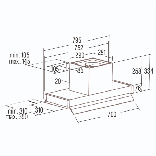 • Capacidad de extracción máxima - mìnima: 766m3/h - 272m3/h