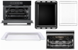 • Funciones de cocción descongelación, calor inferior, convencional, convencional + ventilador, gratinador, grill doble, grill doble + ventilador, convección, precalentamiento y microondas