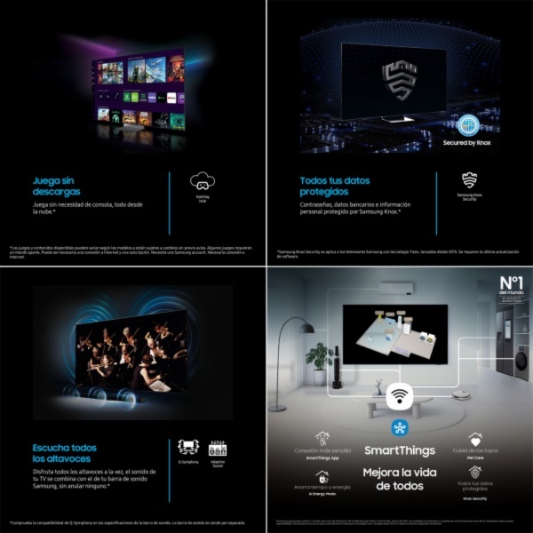 • Samsung knox security te protege contra ataques dañinos al bloquear automáticamente aplicaciones maliciosas no autorizadas o el acceso a sitios de phishing, e incluso protege los dispositivos iot de tu hogar conectados a tu tv. de esta forma, tus datos confidenciales, como códigos pin o contraseñas, están protegidos por múltiples capas de software y hardware.