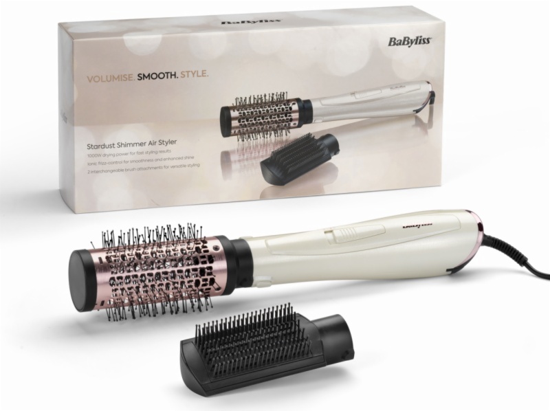 • Babyliss cepillo de aire stardust shimmer, seca, alisa y moldea, todo en uno, 1000 w, iónico antiencrespamiento, cepillo 50 mm, cepillo alisador