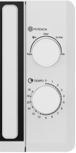 • Estética blanca con puerta blanca y abertura con tirador. cavidad esmaltada en blanco con iluminación led y base cerámica, sin plato de cristal. sistema de control manual y temporizador mecánico. ofrece 5 niveles de potencia y distintas funciones para obtener el mayor rendimiento y facilitar el proceso de cocción.