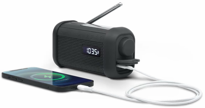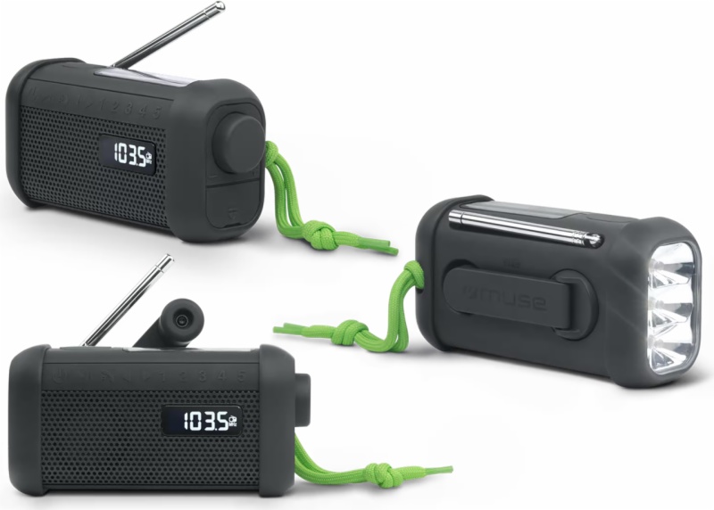 • Dinamo de manivela y panel solar para suministro de energìa de emergencia