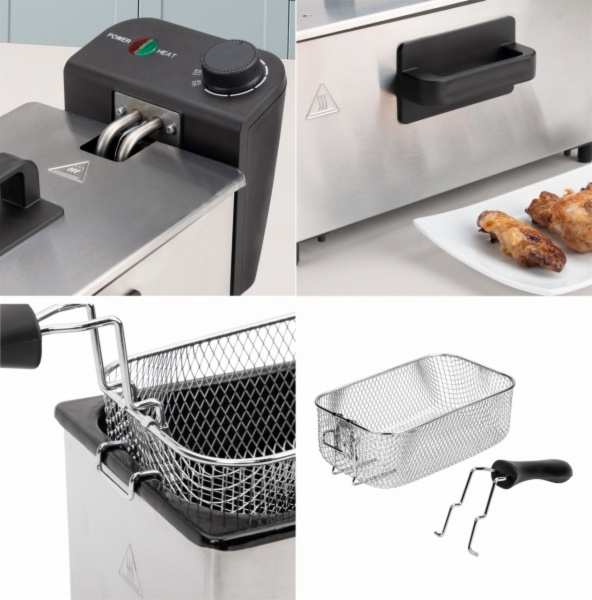 • Tapa inoxidable con asa. apta para colocar durante la fritura.