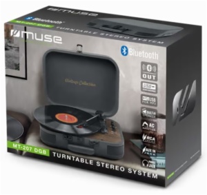 • Experimenta el encanto nostálgico de los discos de vinilo combinado con la comodidad moderna con el sistema estéreo mt-207 dgb con tocadiscos. este sistema versátil está diseñado tanto para los entusiastas del vinilo como para los oyentes casuales, ofreciendo una variedad de funciones para mejorar tu disfrute musical.
