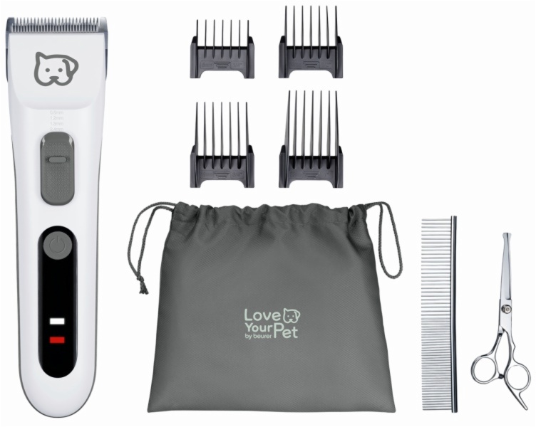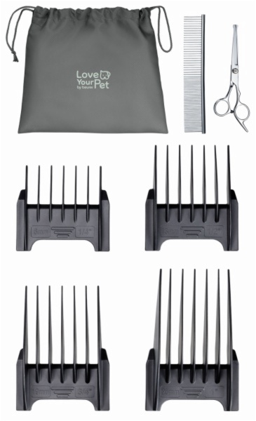 • Con cuatro accesorios de peine (6-25 mm) y ajuste fino (0,6-2,4 mm), la máquina se adapta perfectamente a cualquier tipo de pelaje. el set incluye tijeras, peine, bolsa, aceite para el cuidado y cepillo de limpieza - todo lo que necesitas para un cuidado sencillo en casa.