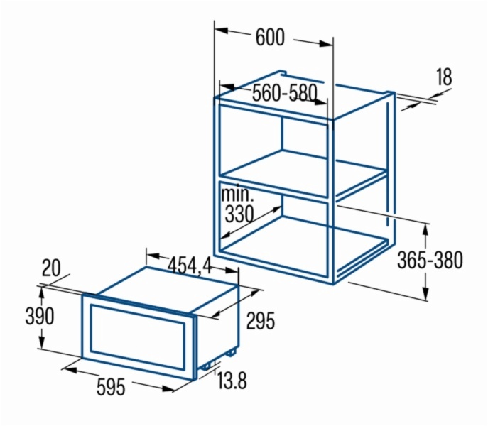 • Instalación en mueble alto / columna de 60 cms de ancho