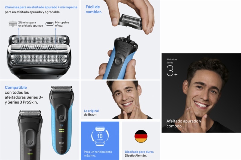 • Compatible con todas las generaciones de afeitadoras series 3, fácil de cambiar con solo 1 clic.