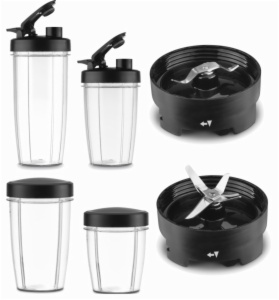 • Accesorios 6-en-1: vaso de 0,8l, vaso de 0,5l, moledor, tapa para bebida deportiva y tapa estándar