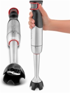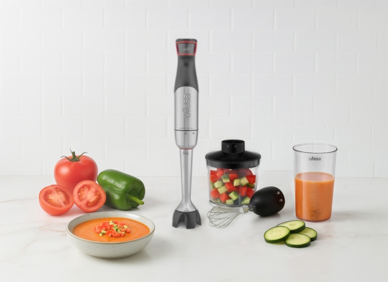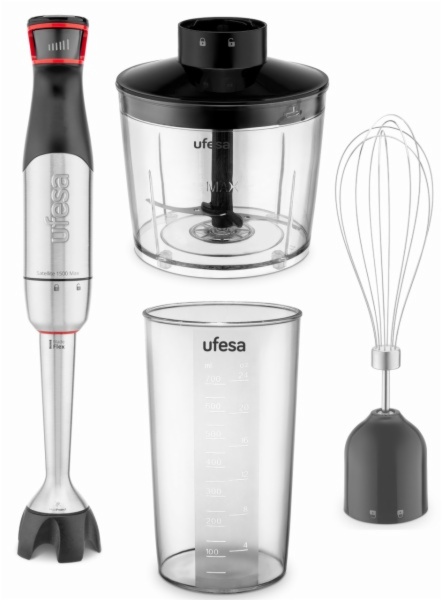 • Set de accesorios 3 en 1: batidor emulsionador, picadora y vaso medidor de 700ml