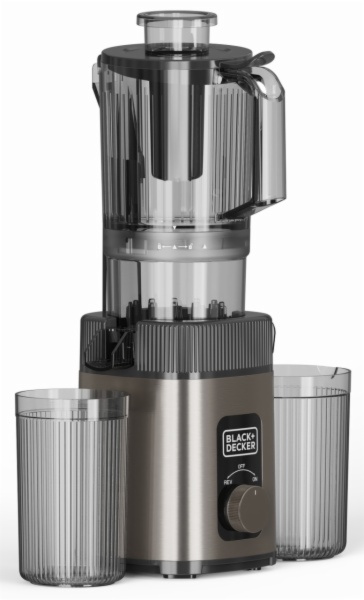 • Cuenta con una amplia boca de entrada de 110 mm, que facilita la introducción de alimentos enteros o en trozos grandes, reduciendo el tiempo de preparación. dispone de salidas separadas para zumo y pulpa, con una capacidad de 800 ml para zumo y 600 ml para pulpa, permitiendo un uso práctico y continuo.